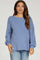 A ribbed maternity top with long sleeves, a rounded neckline, long drop shoulder sleeves, and side slits at the hem.