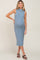 Blue Ribbed Sleeveless Mock Neck Maternity Midi Dress