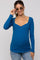 Blue Ribbed Sweetheart Neck Long Sleeve Maternity Top