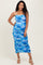 Blue Rose Floral Mesh Sleeveless Ruched Maternity Dress