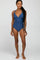 Blue Ruched Side Strappy Cross Back One Piece Swimsuit