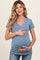 Blue V-Neck Short Sleeve Maternity Top