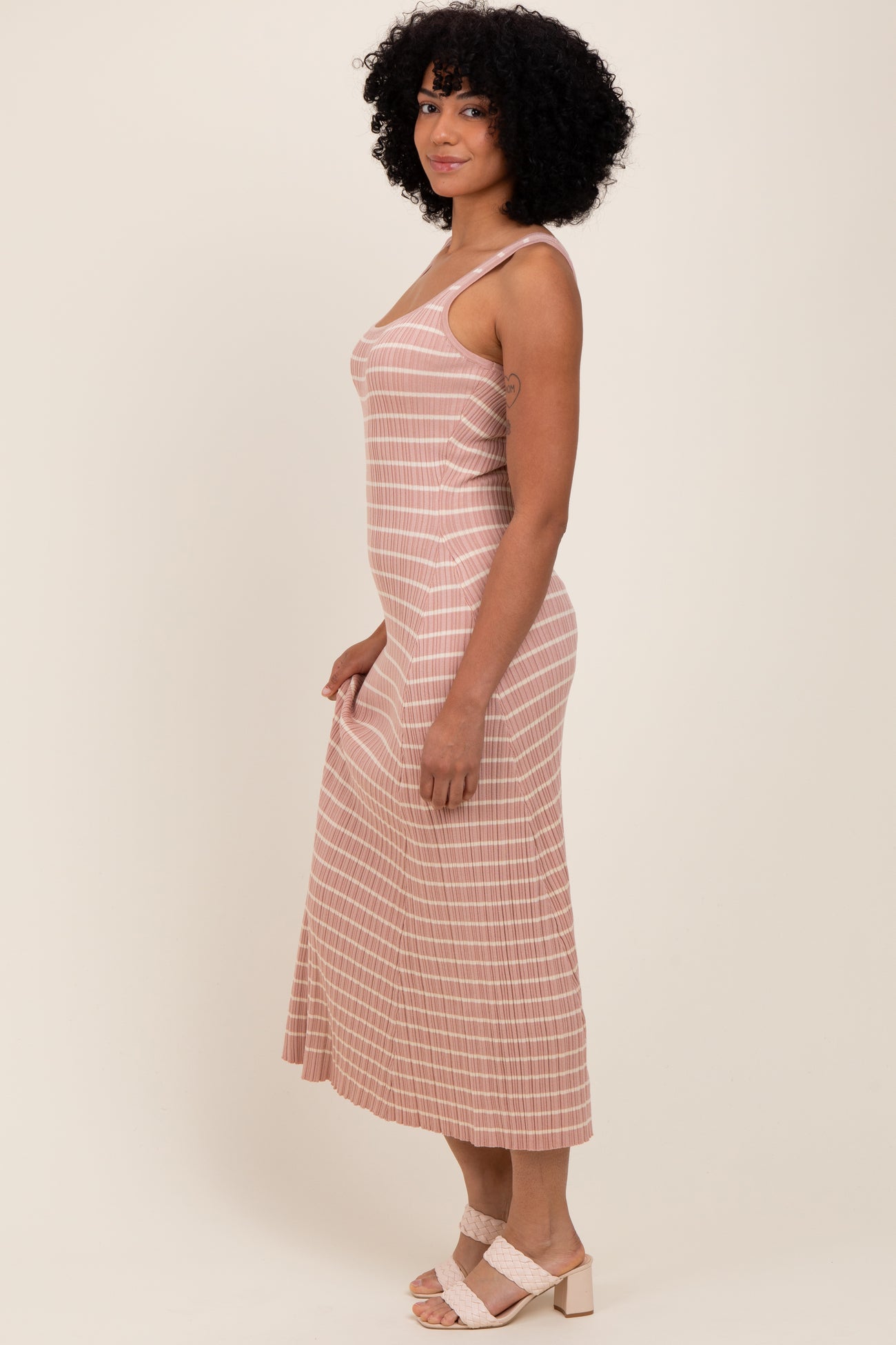 Blush/Cream Lightweight Rib Fit And Flare Midi Dress