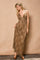 Turn heads with our Bronzed Animal Print Plunging Maxi Dress. This statement gown features a striking bronze animal pattern and a daring plunging neckline, offering a bold yet elegant look. The flowy maxi silhouette flatters every figure, while adjustable spaghetti straps and a cinched waist ensure all-day comfort. Perfect for special occasions, date nights, or unforgettable girls' nights out, this dress brings just the right amount of glamour and confidence to your wardrobe. Pair with your favorite heels and gold accessories for a complete show-stopping look.
