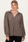 Brown Brushed Colorblock Long Sleeve Collared V-Neck Top