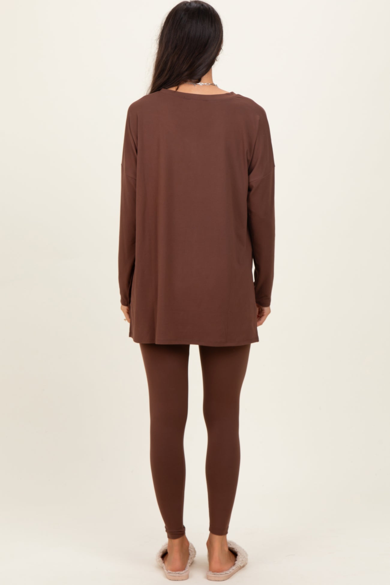 Cozy up in style with our Brown Brushed Knit Oversized Top and Legging Set. This ultra-soft, breathable fabric hugs you in all the right ways for an effortlessly relaxed fit. The oversized V-neck top offers a laid-back silhouette with side slits for added comfort, while the matching high-rise leggings provide smooth, stretchy support. Perfect for lounging at home or casual outings, this set combines comfort and chic in one. Pair with your favorite slippers or sneakers for an easy, put-together look. Available in multiple sizes for a perfect fit every time. Elevate your loungewear game today!