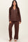Brown Button Down Top Wide Leg Pant Pajama Set
