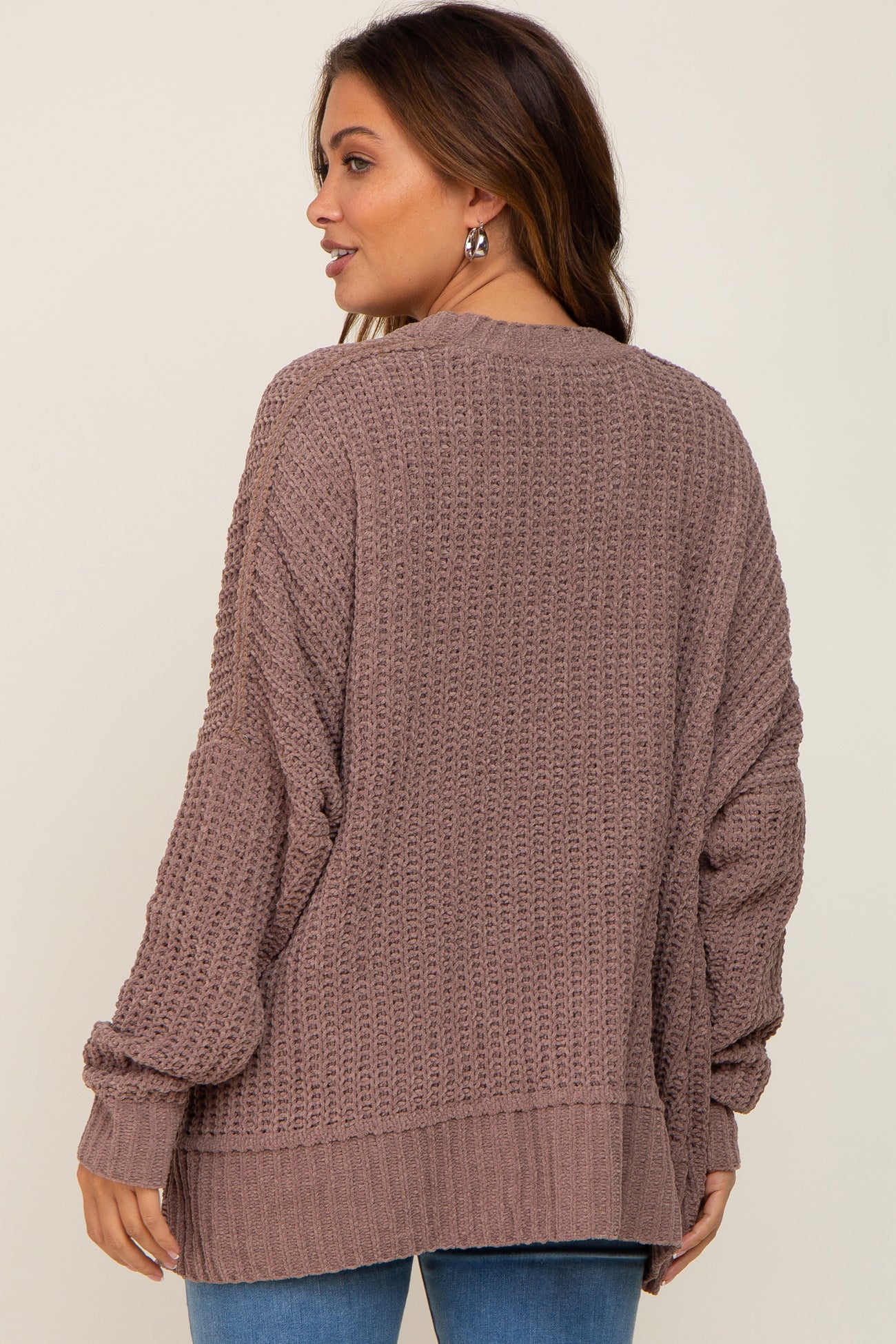 A super soft chunky knit maternity cardigan in an oversized fit with an open front, two front pockets and two side slits.