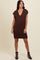 Brown Contrast Stitch V-Neck Mini Sweater Dress