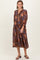 Brown Floral Front Tie Tiered Midi Dress