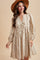Brown Floral Pom Accent Hem Long Sleeve Dress