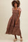 Brown Floral Print Contrast Shoulder Tie Tiered Midi Dress