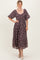 Brown Floral Sweetheart Neckline Puff Sleeve Maxi Dress