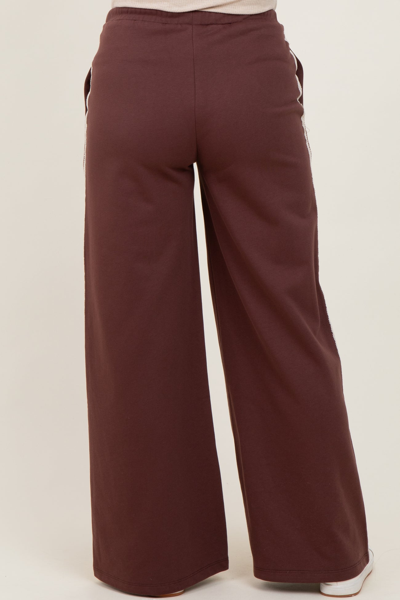 Brown Lace Stripe Drawstring Maternity Lounge Pants