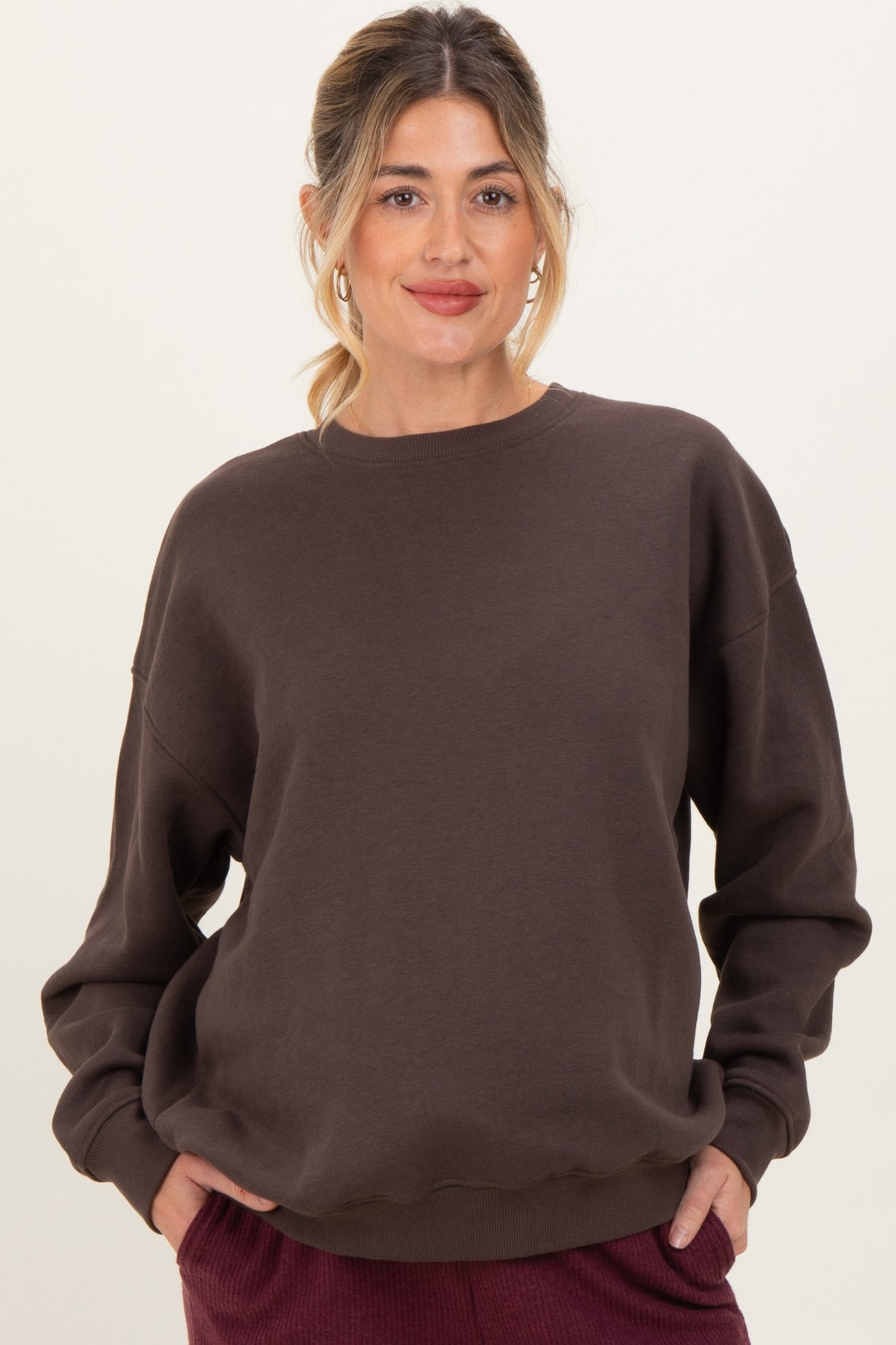 Brown Oversized Fleece Maternity Sweatshirt