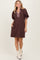 Brown Plaid Accent Puff Sleeve Mini Dress
