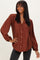 Elevate your everyday style with our Brown Polka Dot Long Sleeve Button Down V-Neck Top. Featuring a rich brown base adorned with classic white polka dots, this top brings playful charm to any outfit. The V-neckline and button-down front add a touch of sophistication, while the gathered shoulders and billowy long sleeves with elastic cuffs offer a flattering, relaxed fit. Perfect for pairing with jeans, skirts, or tailored pants, this versatile blouse transitions effortlessly from casual days to chic evenings. Made from lightweight, breathable fabric for all-day comfort. Add a timeless, feminine piece to your wardrobe today!