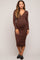 Brown Ribbed Fitted Button Long Sleeve Maternity Dress