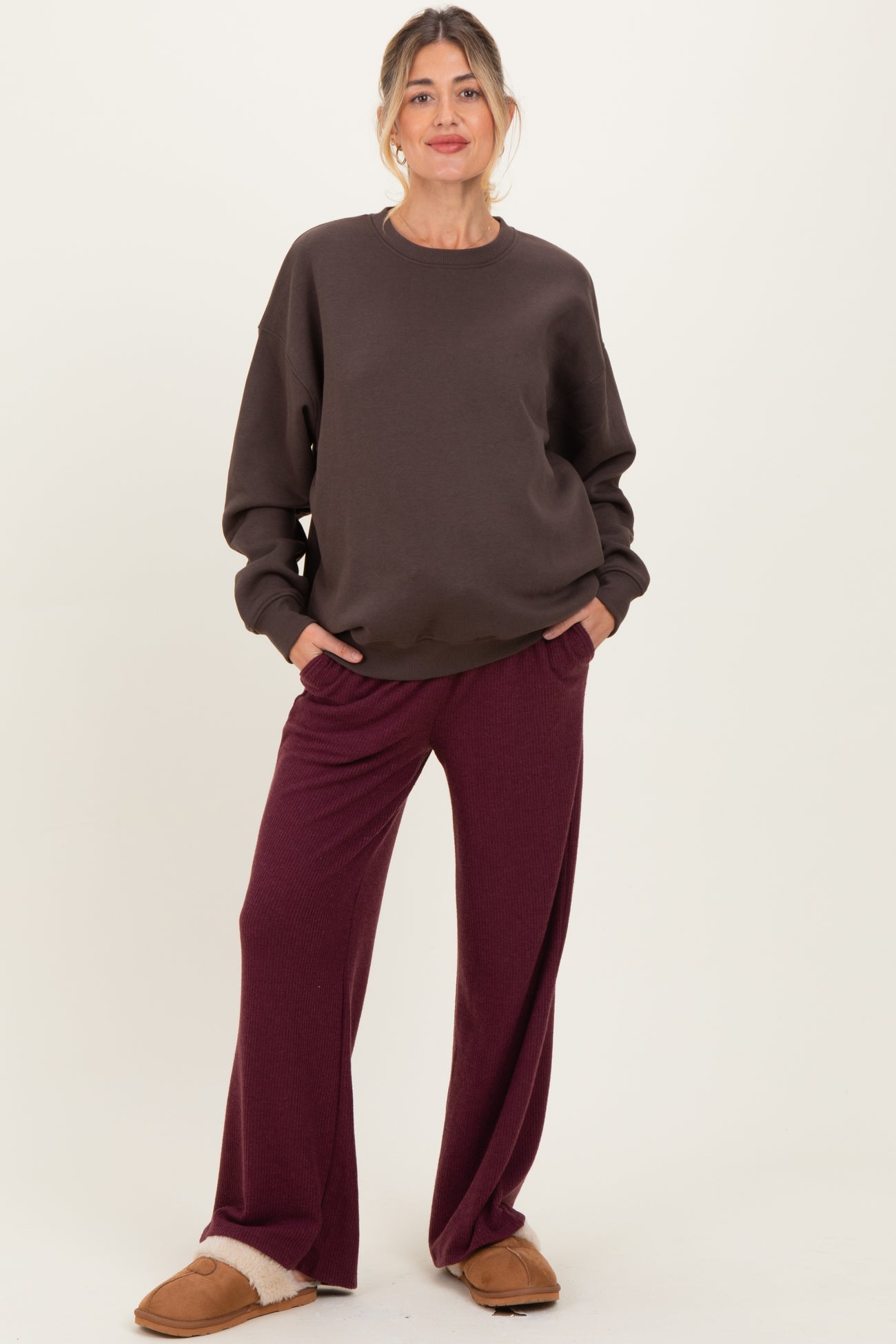 Burgundy Brushed Ribbed Knit Maternity Lounge Pants