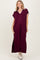 Burgundy Collared Stitch Detail Short Sleeve Midi Dress
