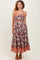 Burgundy Floral Contrast Print Sleeveless Midi Dress