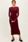 Burgundy Mesh Ruched Long Sleeve Midi Dress