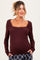 Burgundy Pointelle Knit Lace Trim Square Neck Maternity Top