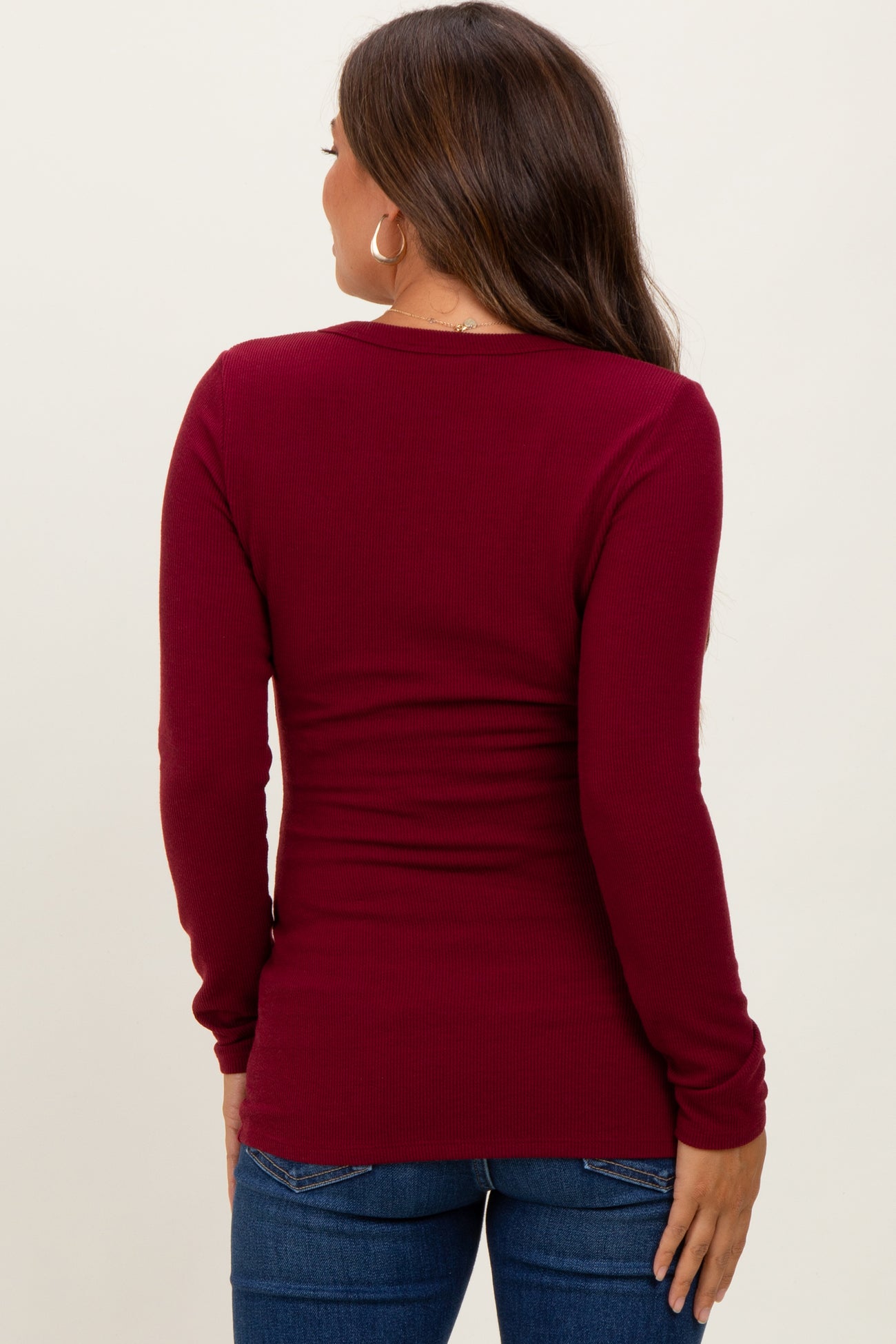 Burgundy Ribbed Long Sleeve Maternity Henley Top
