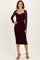 Burgundy Ruched Lace Sleeve Midi Dress