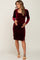 Burgundy Velvet Long Sleeve Side Slit Maternity Dress