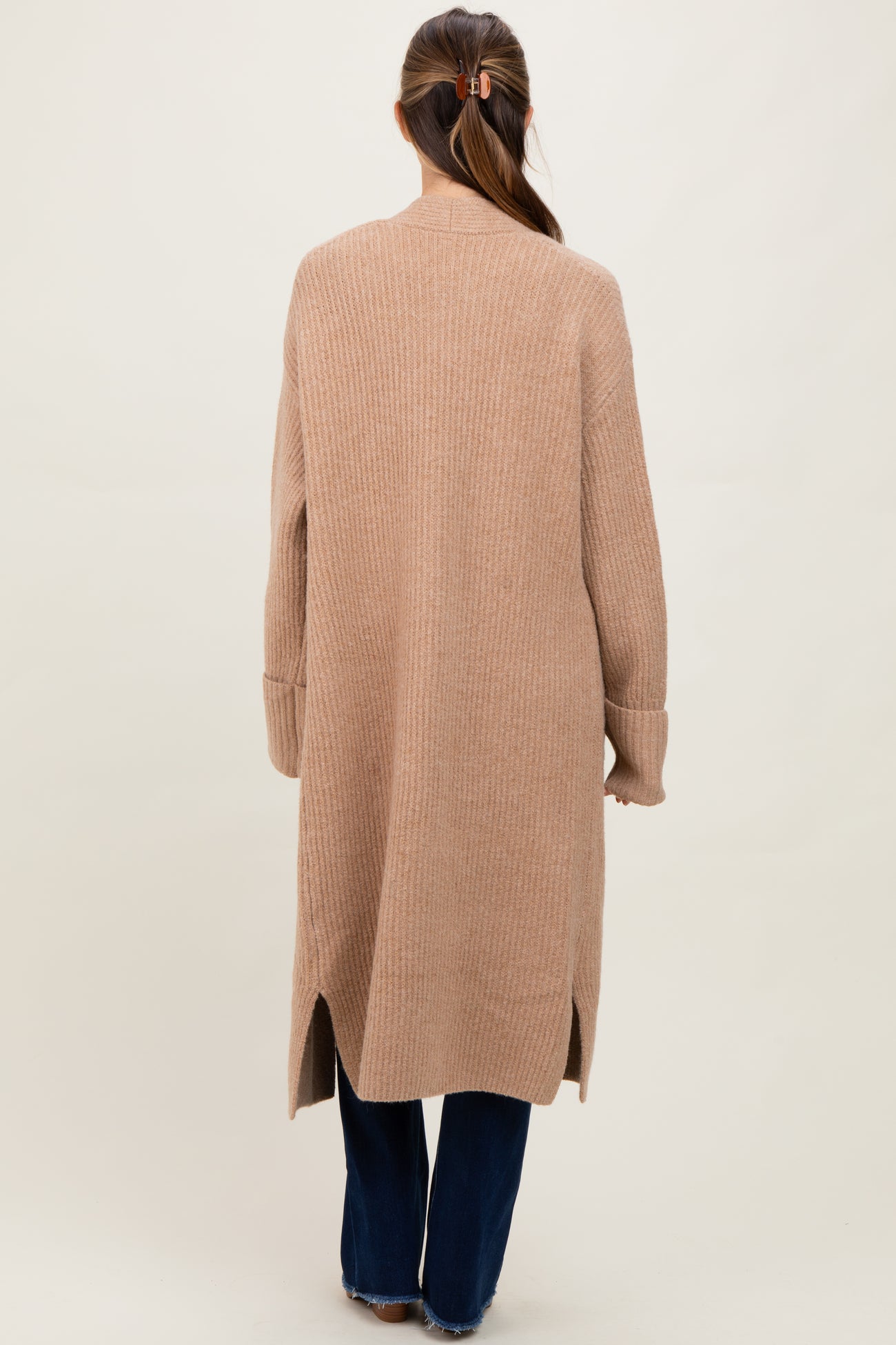 Camel Ribbed Chunky Knit Long Oversized Maternity Cardigan