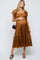 Camel Satin Flutter Sleeve Maternity Midi Dress