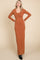Camel Solid Long Sleeve Scoop Neck Maxi Dress