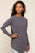 A heathered top featuring long sleeves, a curved hem and a rounded neckline.