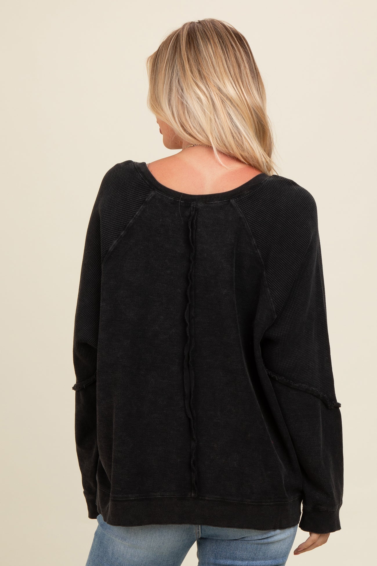 Charcoal Mixed Knit Raw Hem Pullover Top