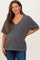 Charcoal Raw Edge V-Neck Short Sleeve Maternity T-Shirt