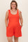 A solid knit maternity plus romper featuring a rounded neckline and knotted straps.