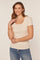 Elevate your everyday style with our Cream Ribbed Square Neck T-Shirt. Crafted from soft, breathable fabric, this top features a flattering square neckline that adds a touch of elegance to a classic silhouette. The ribbed texture enhances comfort and stretch, ensuring a perfect fit throughout the day. Its versatile cream hue pairs effortlessly with jeans, skirts, or layered under jackets for any season. With short sleeves and a sleek, form-fitting design, this tee is a must-have staple for your wardrobe—combining simplicity with chic for a timeless look you'll reach for again and again.