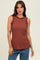 Dark Rust Rib Knit Ruffle Trim Sleeveless Top