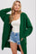 A solid chunky waffle knit cardigan with an open front and two side pockets.