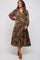 Forest Green Floral Ruffle Neck Tiered Maternity Midi Dress