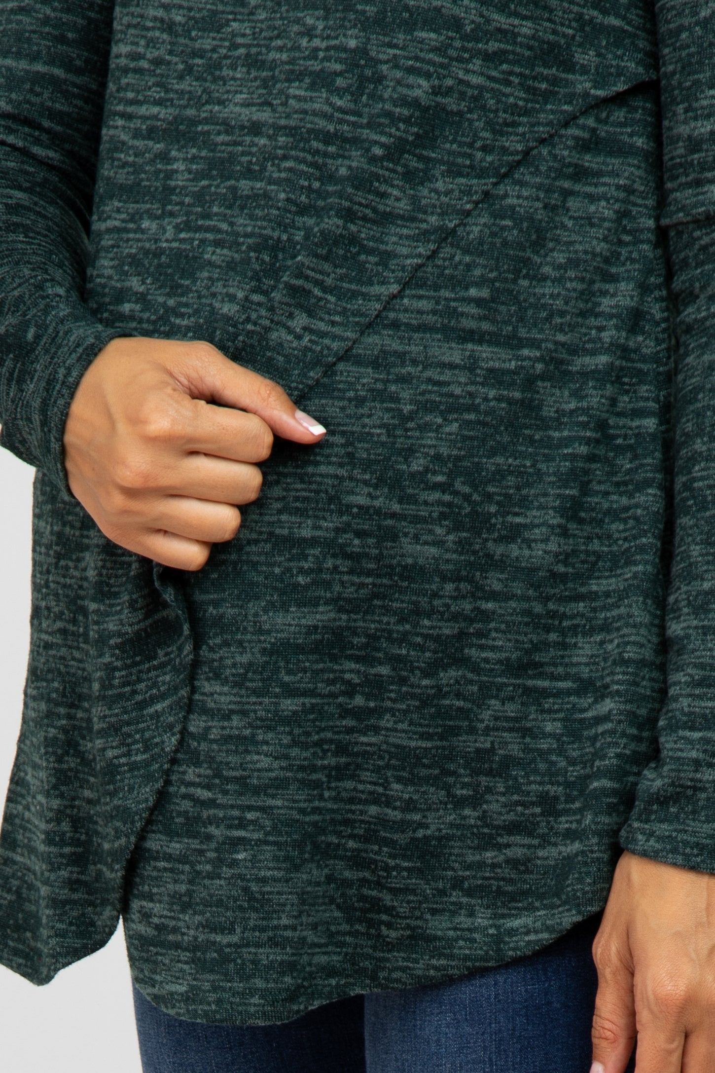 Forest Green Heather Knit Layered Front Maternity/Nursing Top