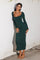 A ribbed midi dress featuring a scoop neckline and long sleeves.