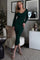 Forest Green V-Neck Long Sleeve Fitted Maxi Dress