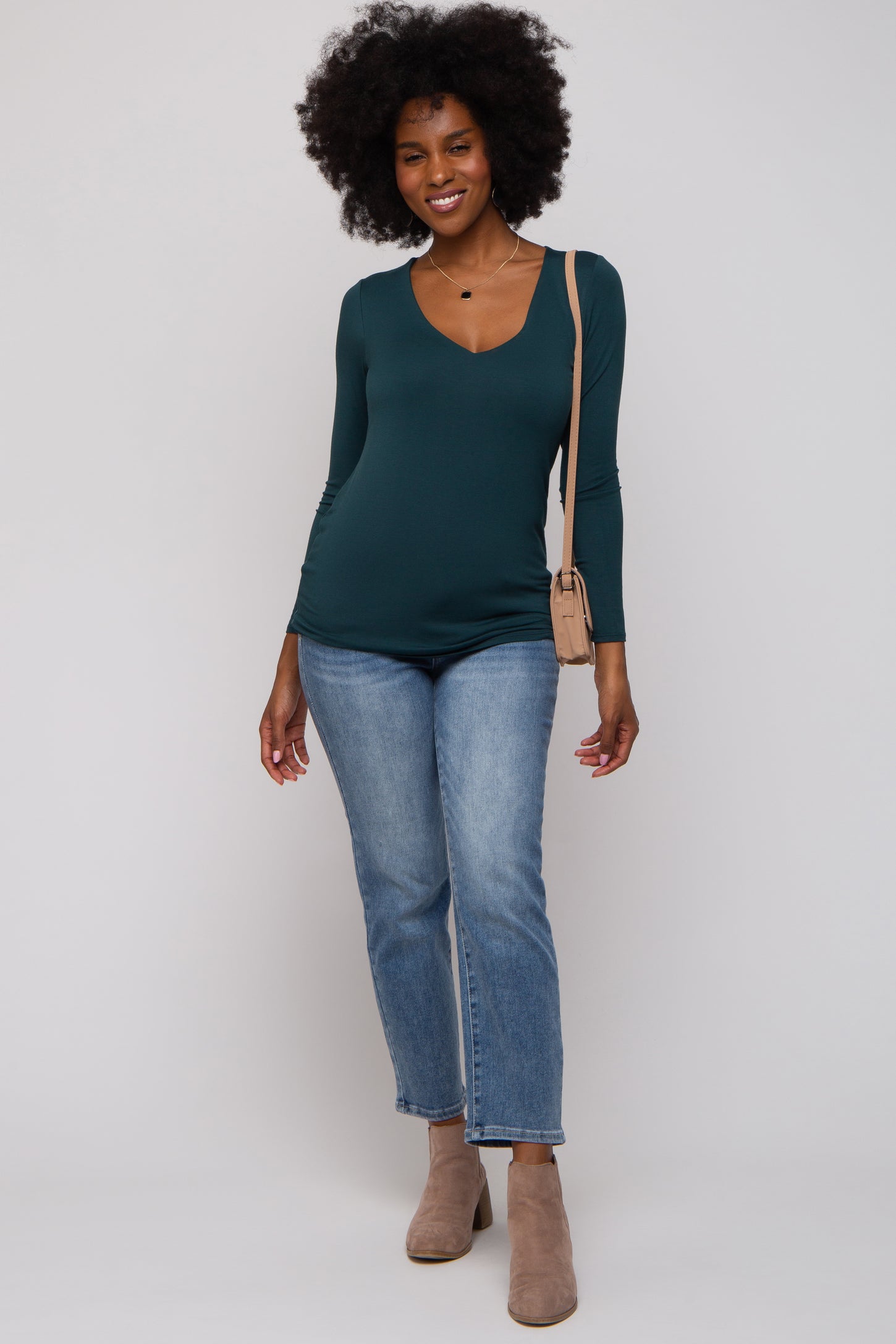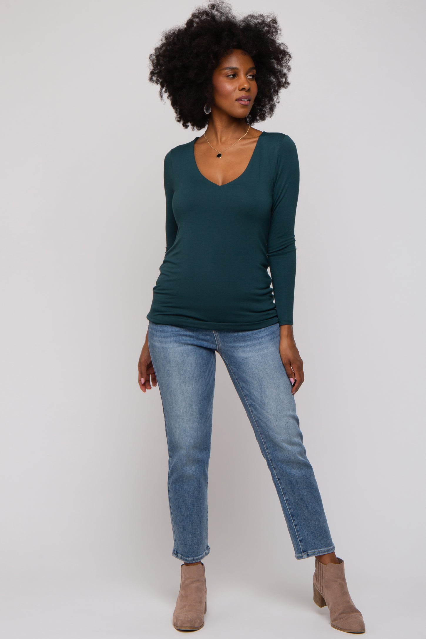 Forest Green V-Neck Long Sleeve Top
