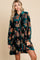Forest Green Velvet Floral Burnout Button Front Long Sleeve Dress