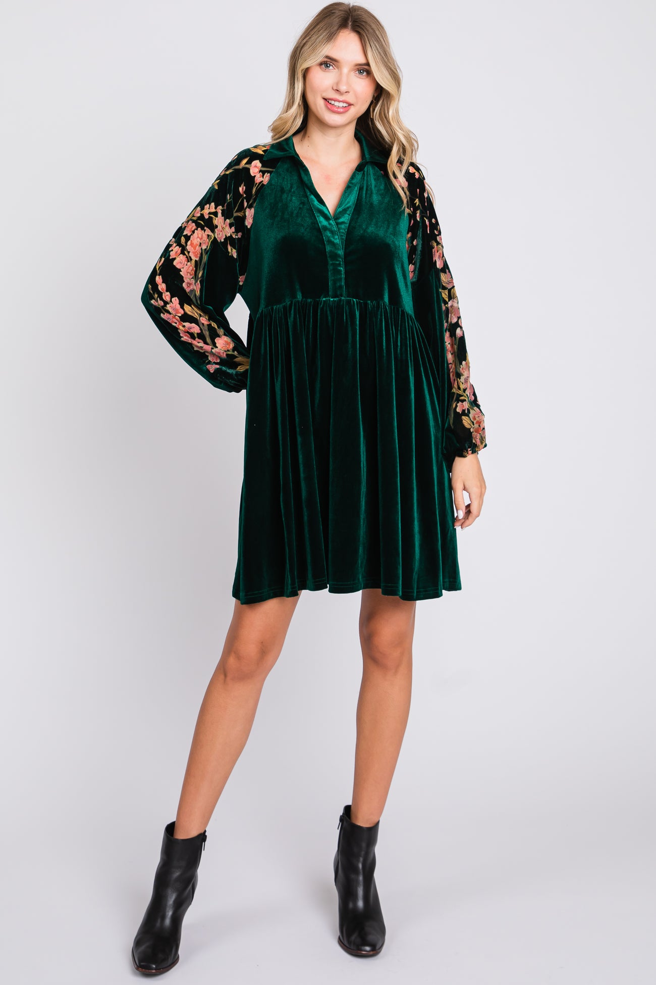 Forest Green Velvet Floral Long Sleeve Maternity Dress