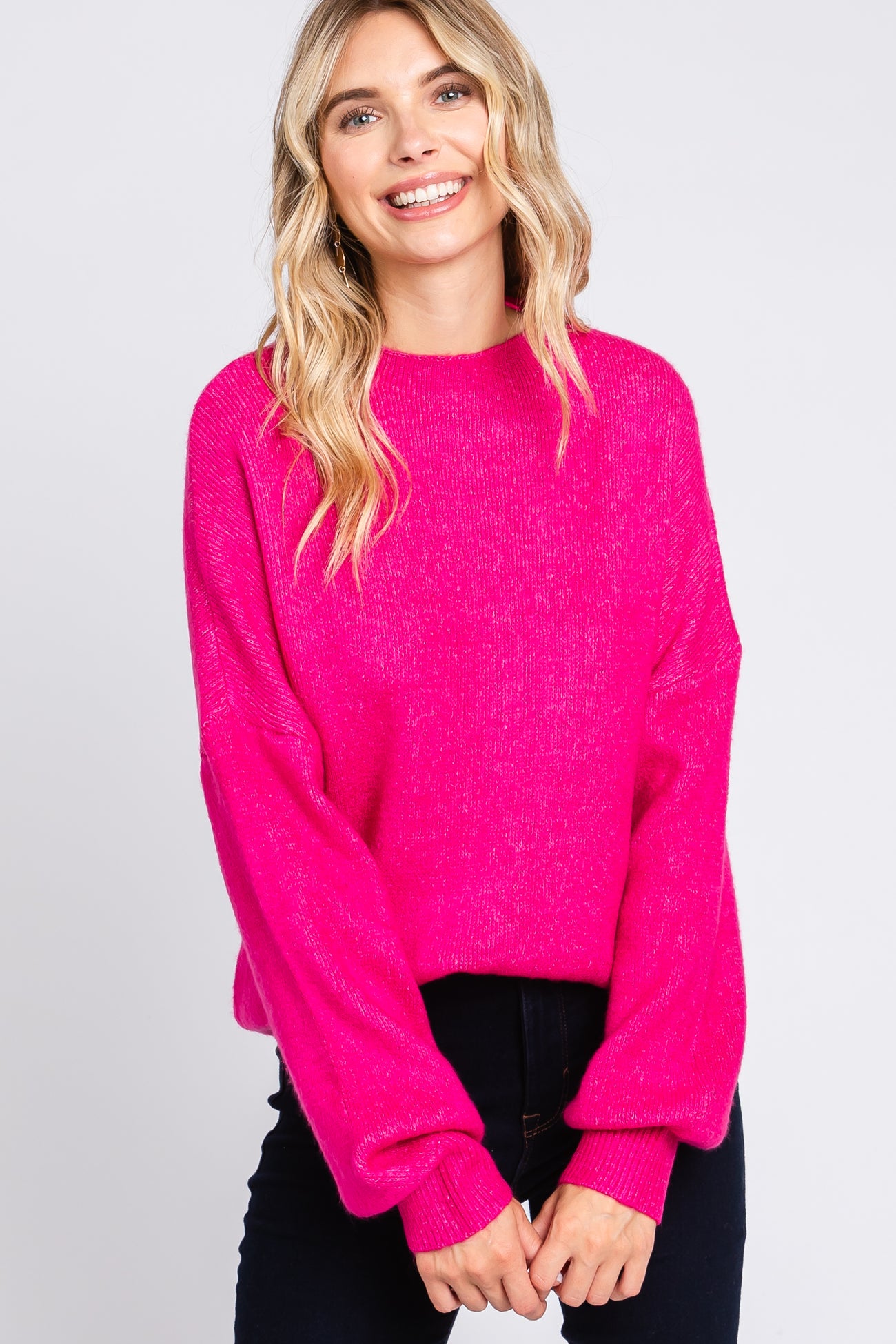 A solid sweater with oversized bubble sleeves and drop shoulder relaxed fit.