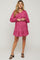 Fuchsia Dot Print Long Sleeve Ruffle Maternity Dress