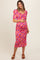 Fuchsia Floral Ruffle Sweetheart Fitted Maternity Midi Dress